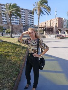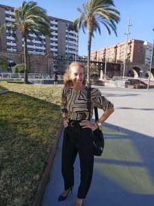 La blusa con estampado de rayas en varios colores, juega con esa ilusión óptica antes mencionada. Para la parte inferior opté por un pantalón en negro, de cintura alta y, así darle un toque más sobrio y elegante al outfit. Pero también se podría sustituir por una falda en tono liso o incluso de rayas y jugar al mix & match.